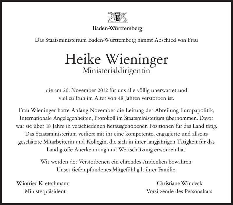 Hier finden Sie alle Traueranzeigen aus der Zeitung, die bisher für Heike Wieninger erschienen sind. Weitere Traueranzeigen, die in der Zeitung erscheinen, werden hier ebenfalls aufgelistet