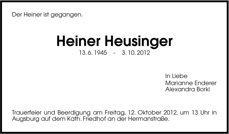 Hier finden Sie alle Traueranzeigen aus der Zeitung, die bisher für Heiner Heusinger erschienen sind. Weitere Traueranzeigen, die in der Zeitung erscheinen, werden hier ebenfalls aufgelistet