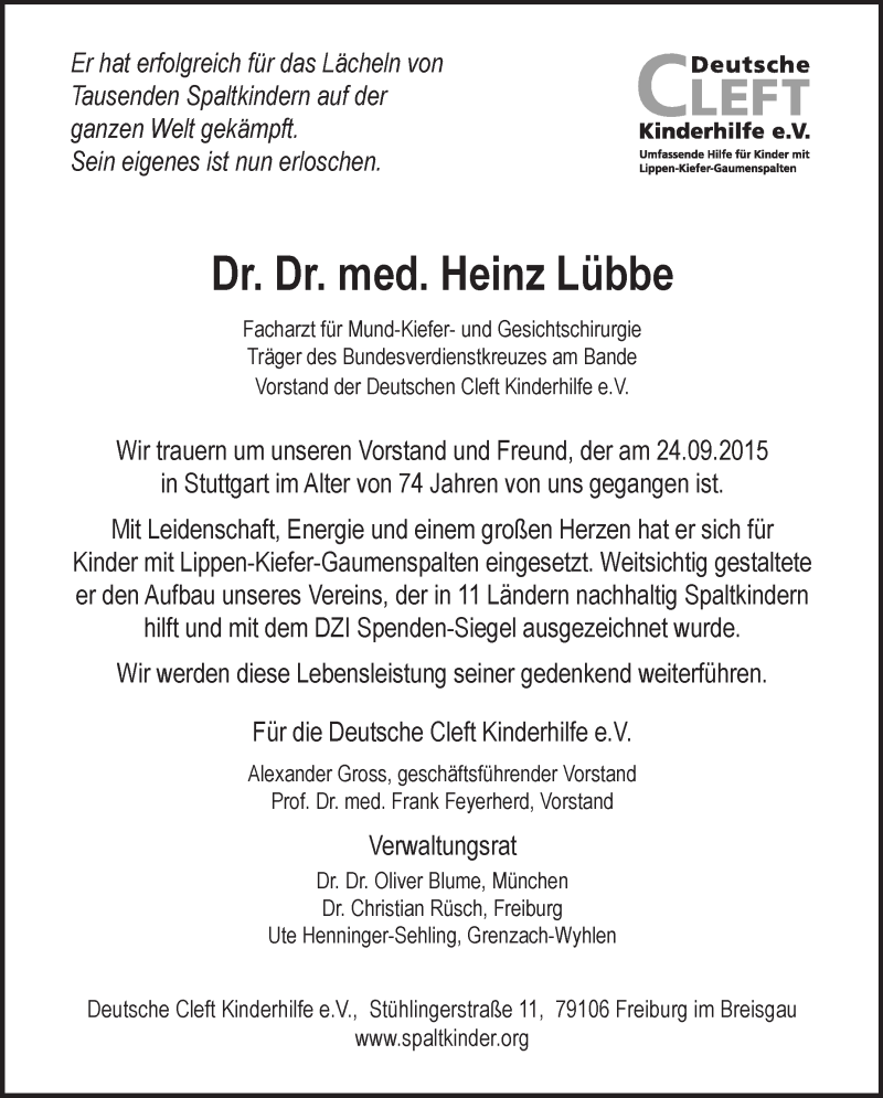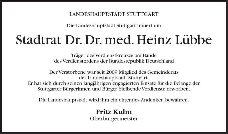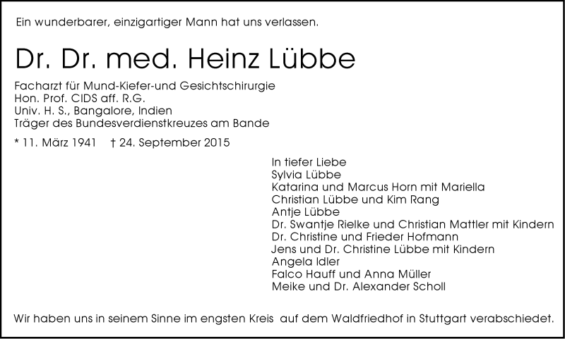 Hier finden Sie alle Traueranzeigen aus der Zeitung, die bisher für Heinz Lübbe erschienen sind. Weitere Traueranzeigen, die in der Zeitung erscheinen, werden hier ebenfalls aufgelistet