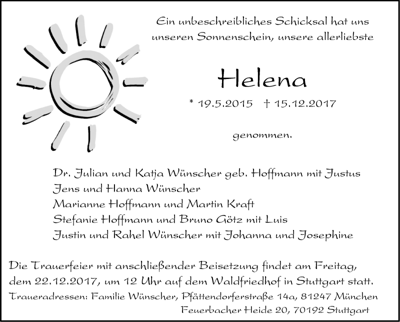Hier finden Sie alle Traueranzeigen aus der Zeitung, die bisher für Helena erschienen sind. Weitere Traueranzeigen, die in der Zeitung erscheinen, werden hier ebenfalls aufgelistet