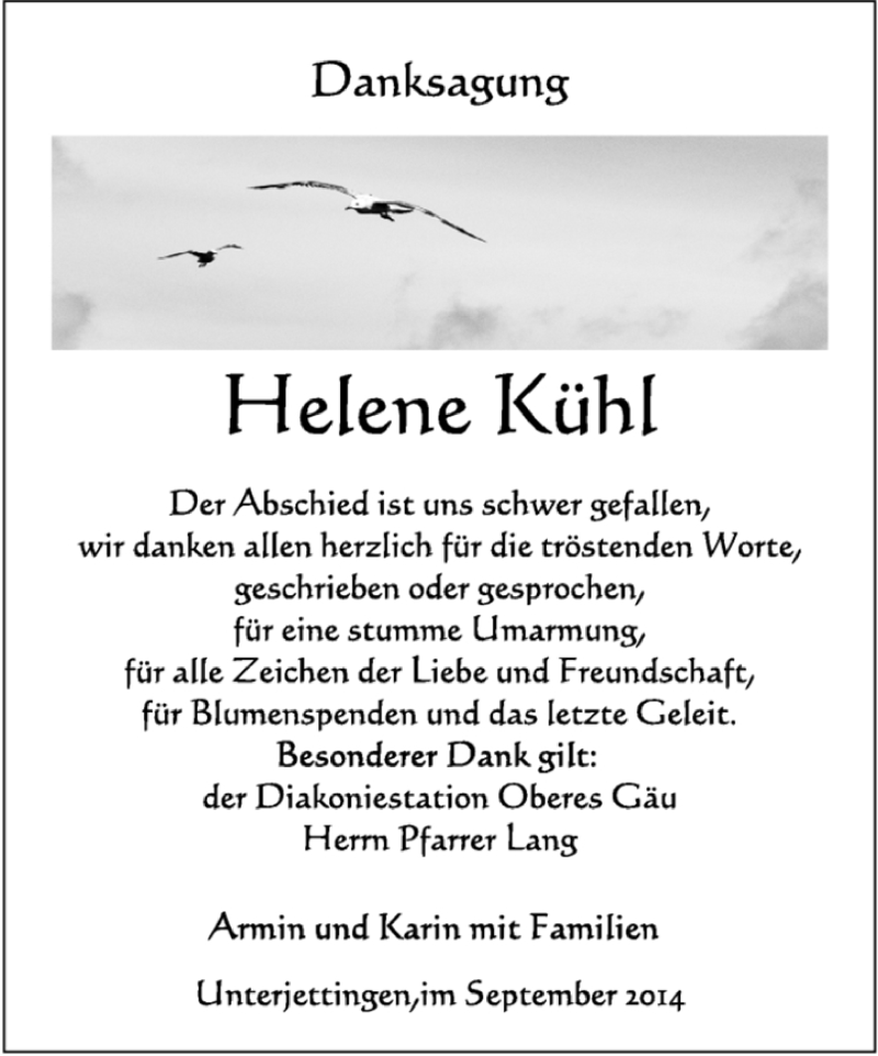 Hier finden Sie alle Traueranzeigen aus der Zeitung, die bisher für Helene Kühl erschienen sind. Weitere Traueranzeigen, die in der Zeitung erscheinen, werden hier ebenfalls aufgelistet