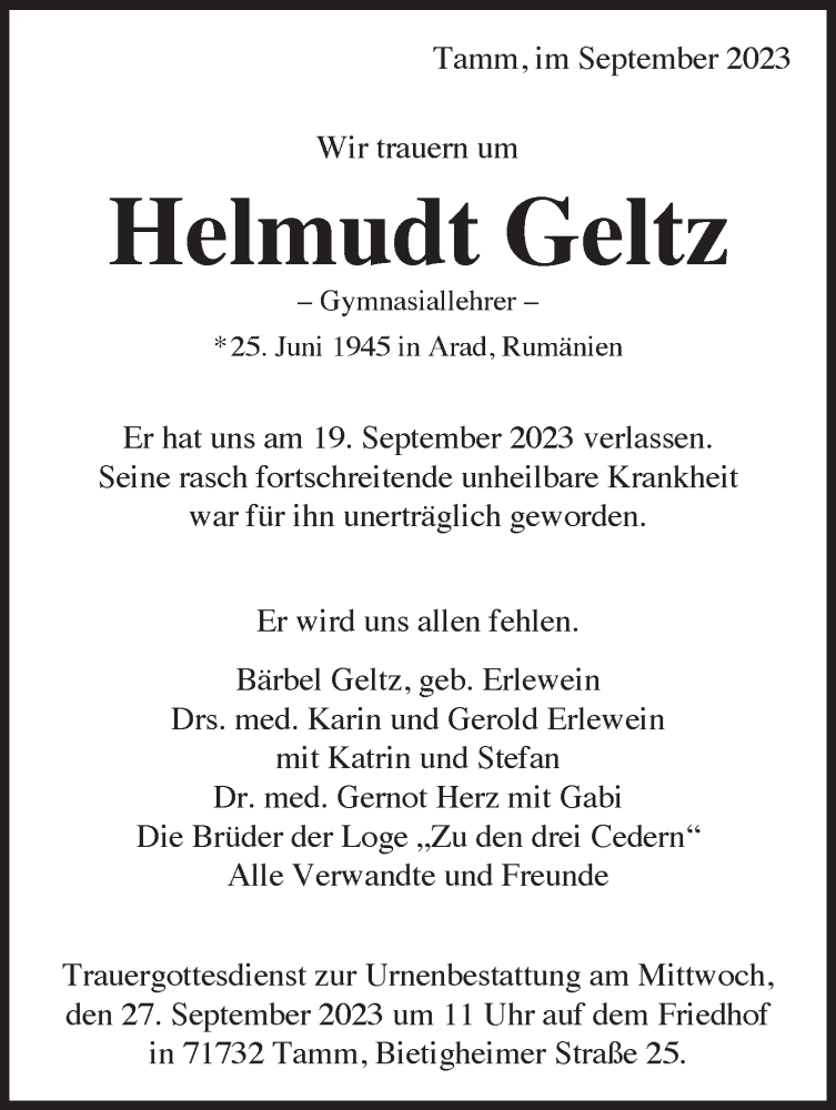 Hier finden Sie alle Traueranzeigen aus der Zeitung, die bisher für Helmudt Geltz erschienen sind. Weitere Traueranzeigen, die in der Zeitung erscheinen, werden hier ebenfalls aufgelistet