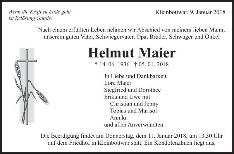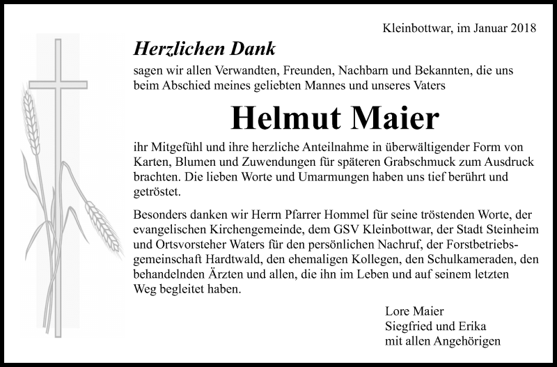 Hier finden Sie alle Traueranzeigen aus der Zeitung, die bisher für Helmut Maier erschienen sind. Weitere Traueranzeigen, die in der Zeitung erscheinen, werden hier ebenfalls aufgelistet