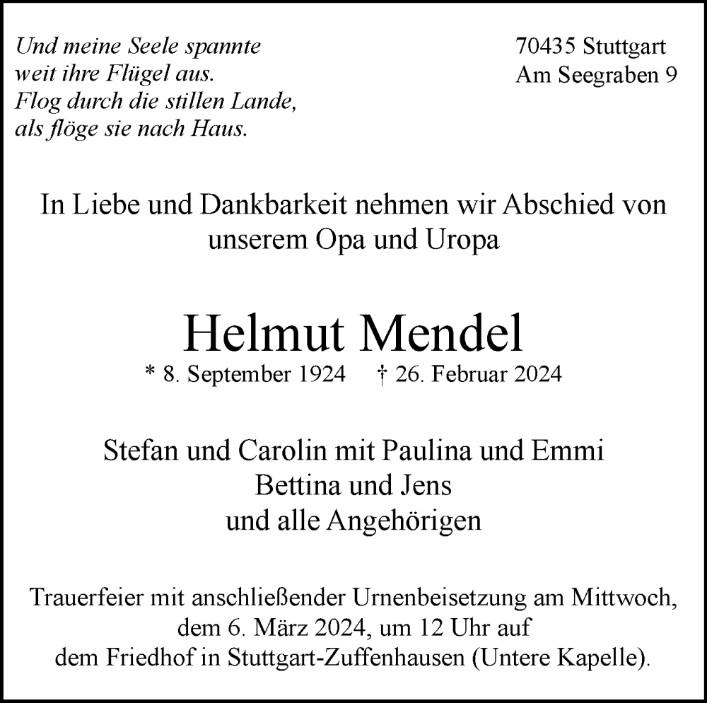 Hier finden Sie alle Traueranzeigen aus der Zeitung, die bisher für Helmut Mendel erschienen sind. Weitere Traueranzeigen, die in der Zeitung erscheinen, werden hier ebenfalls aufgelistet