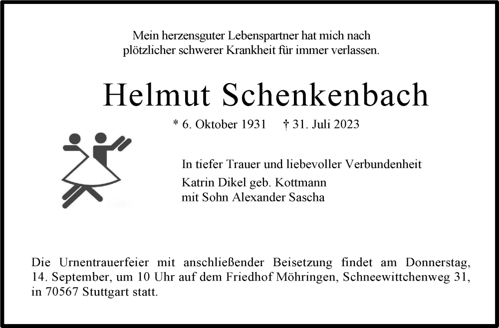 Hier finden Sie alle Traueranzeigen aus der Zeitung, die bisher für Helmut Schenkenbach erschienen sind. Weitere Traueranzeigen, die in der Zeitung erscheinen, werden hier ebenfalls aufgelistet