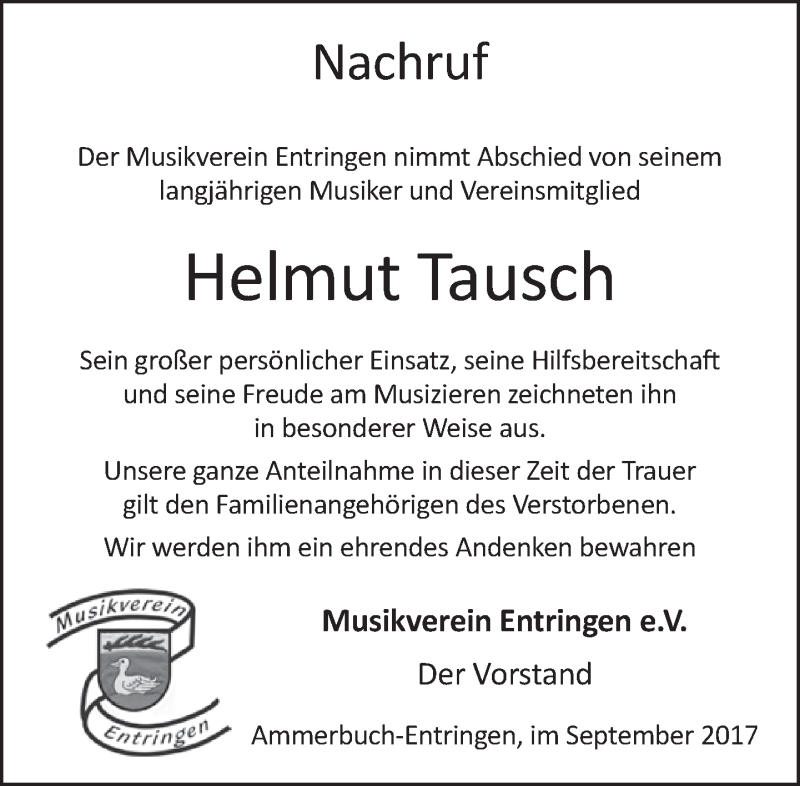 Hier finden Sie alle Traueranzeigen aus der Zeitung, die bisher für Helmut Tausch erschienen sind. Weitere Traueranzeigen, die in der Zeitung erscheinen, werden hier ebenfalls aufgelistet