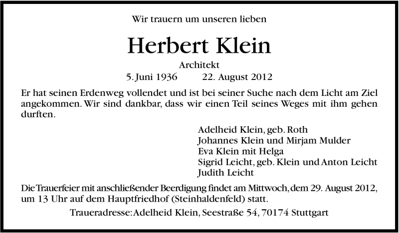 Hier finden Sie alle Traueranzeigen aus der Zeitung, die bisher für Herbert Klein erschienen sind. Weitere Traueranzeigen, die in der Zeitung erscheinen, werden hier ebenfalls aufgelistet