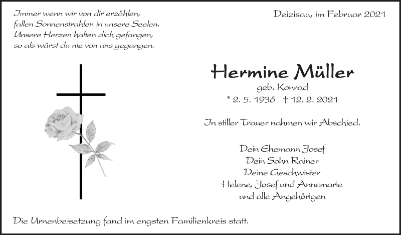 Hier finden Sie alle Traueranzeigen aus der Zeitung, die bisher für Hermine Müller erschienen sind. Weitere Traueranzeigen, die in der Zeitung erscheinen, werden hier ebenfalls aufgelistet