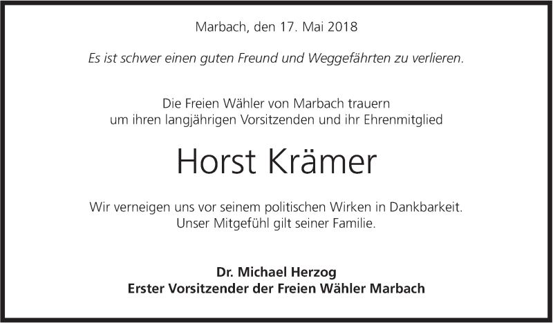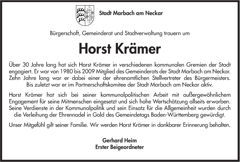 Hier finden Sie alle Traueranzeigen aus der Zeitung, die bisher für Horst Krämer erschienen sind. Weitere Traueranzeigen, die in der Zeitung erscheinen, werden hier ebenfalls aufgelistet