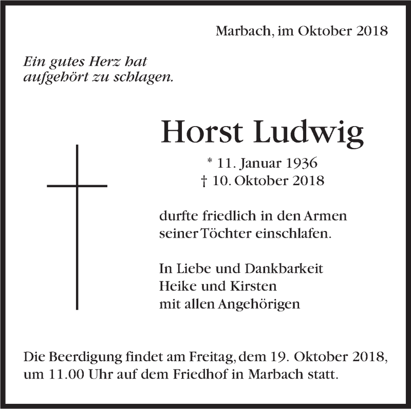 Hier finden Sie alle Traueranzeigen aus der Zeitung, die bisher für Horst Ludwig erschienen sind. Weitere Traueranzeigen, die in der Zeitung erscheinen, werden hier ebenfalls aufgelistet