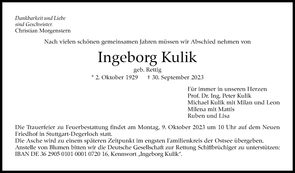Hier finden Sie alle Traueranzeigen aus der Zeitung, die bisher für Ingeborg Kulik erschienen sind. Weitere Traueranzeigen, die in der Zeitung erscheinen, werden hier ebenfalls aufgelistet