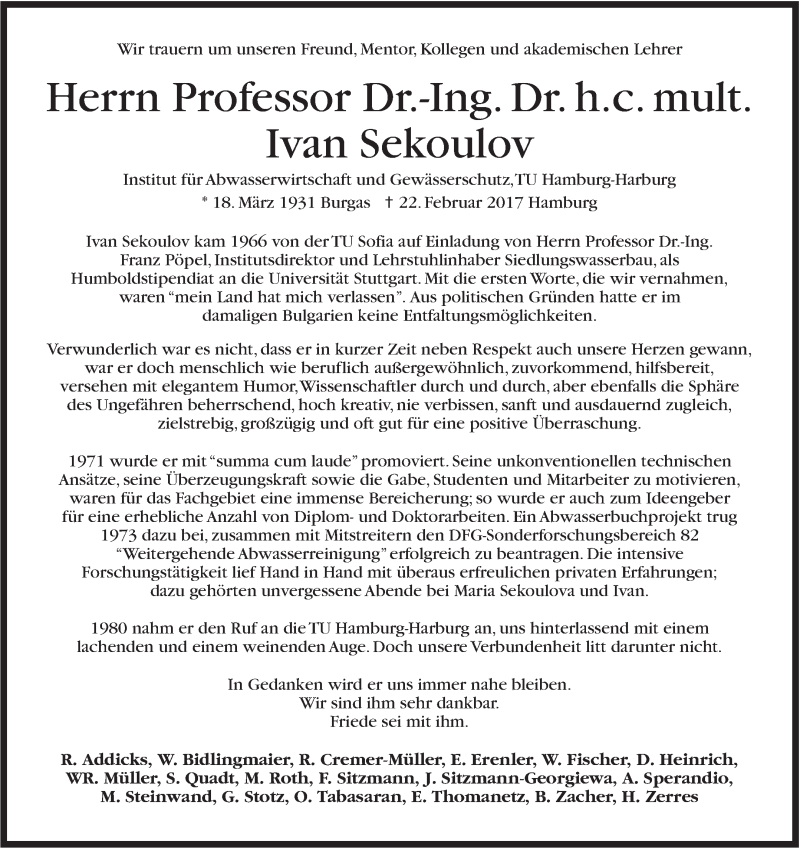 Hier finden Sie alle Traueranzeigen aus der Zeitung, die bisher für Ivan Sekoulov erschienen sind. Weitere Traueranzeigen, die in der Zeitung erscheinen, werden hier ebenfalls aufgelistet