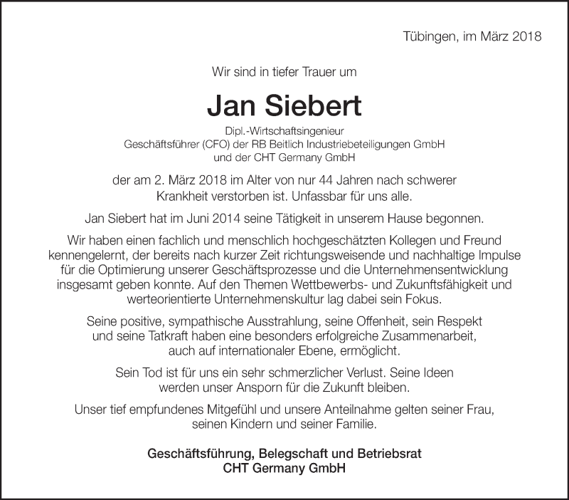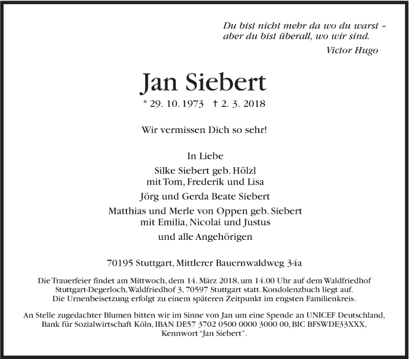 Hier finden Sie alle Traueranzeigen aus der Zeitung, die bisher für Jan Siebert erschienen sind. Weitere Traueranzeigen, die in der Zeitung erscheinen, werden hier ebenfalls aufgelistet