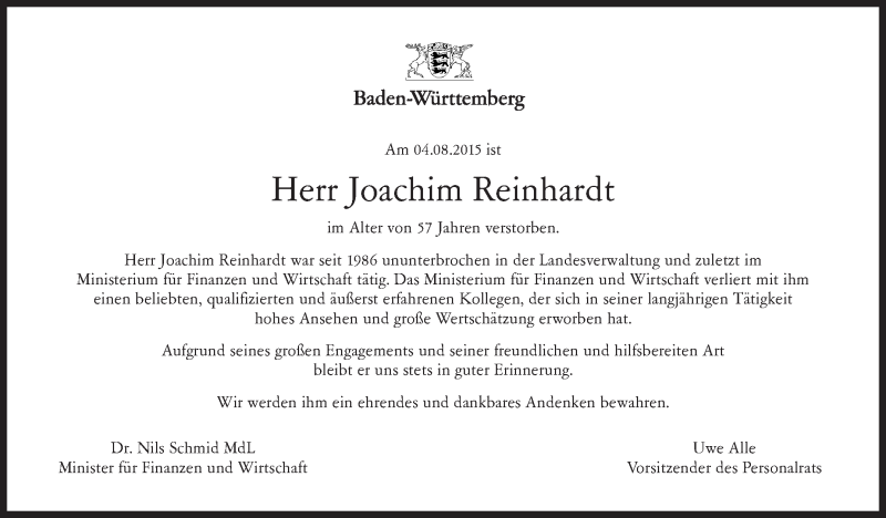 Hier finden Sie alle Traueranzeigen aus der Zeitung, die bisher für Joachim Reinhardt erschienen sind. Weitere Traueranzeigen, die in der Zeitung erscheinen, werden hier ebenfalls aufgelistet