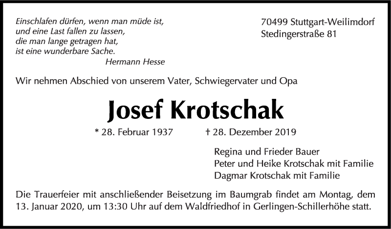 Hier finden Sie alle Traueranzeigen aus der Zeitung, die bisher für Josef Krotschak erschienen sind. Weitere Traueranzeigen, die in der Zeitung erscheinen, werden hier ebenfalls aufgelistet