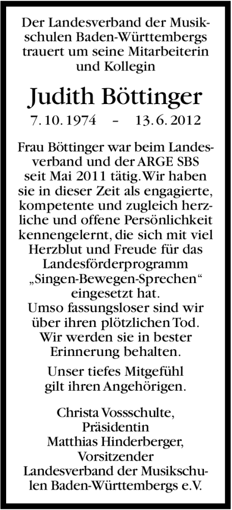 Hier finden Sie alle Traueranzeigen aus der Zeitung, die bisher für Judith Böttinger erschienen sind. Weitere Traueranzeigen, die in der Zeitung erscheinen, werden hier ebenfalls aufgelistet