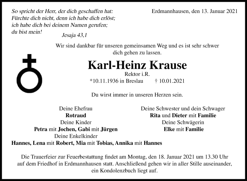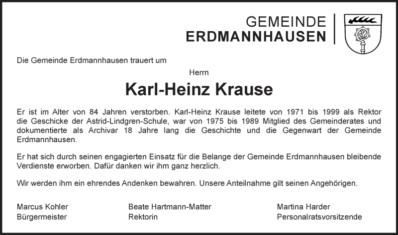 Hier finden Sie alle Traueranzeigen aus der Zeitung, die bisher für Karl-Heinz Krause erschienen sind. Weitere Traueranzeigen, die in der Zeitung erscheinen, werden hier ebenfalls aufgelistet