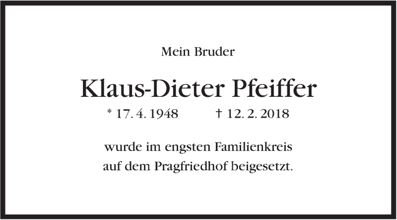 Hier finden Sie alle Traueranzeigen aus der Zeitung, die bisher für Klaus-Dieter Pfeiffer erschienen sind. Weitere Traueranzeigen, die in der Zeitung erscheinen, werden hier ebenfalls aufgelistet