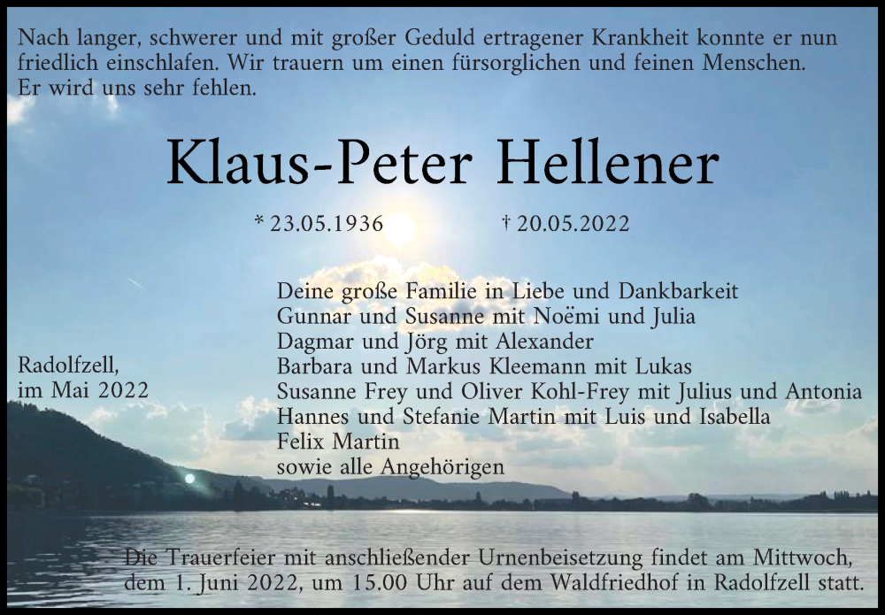 Hier finden Sie alle Traueranzeigen aus der Zeitung, die bisher für Klaus-Peter Hellener erschienen sind. Weitere Traueranzeigen, die in der Zeitung erscheinen, werden hier ebenfalls aufgelistet