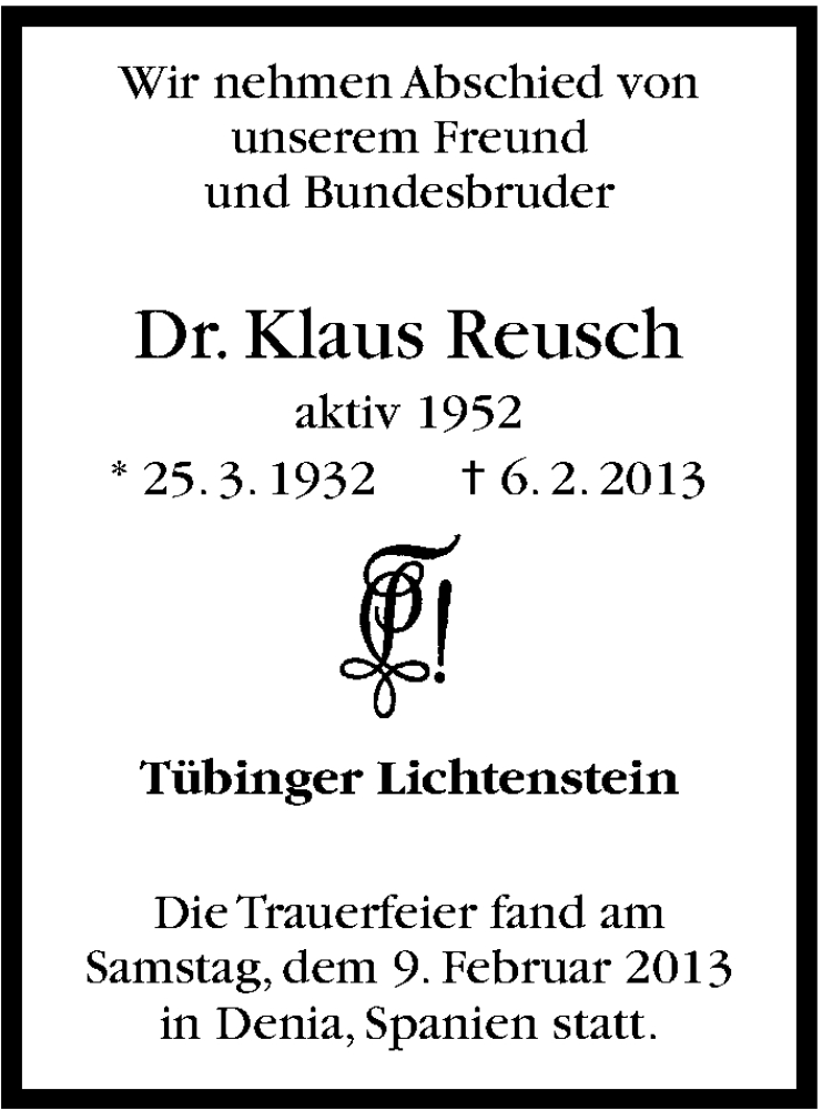 Hier finden Sie alle Traueranzeigen aus der Zeitung, die bisher für Klaus Reusch erschienen sind. Weitere Traueranzeigen, die in der Zeitung erscheinen, werden hier ebenfalls aufgelistet