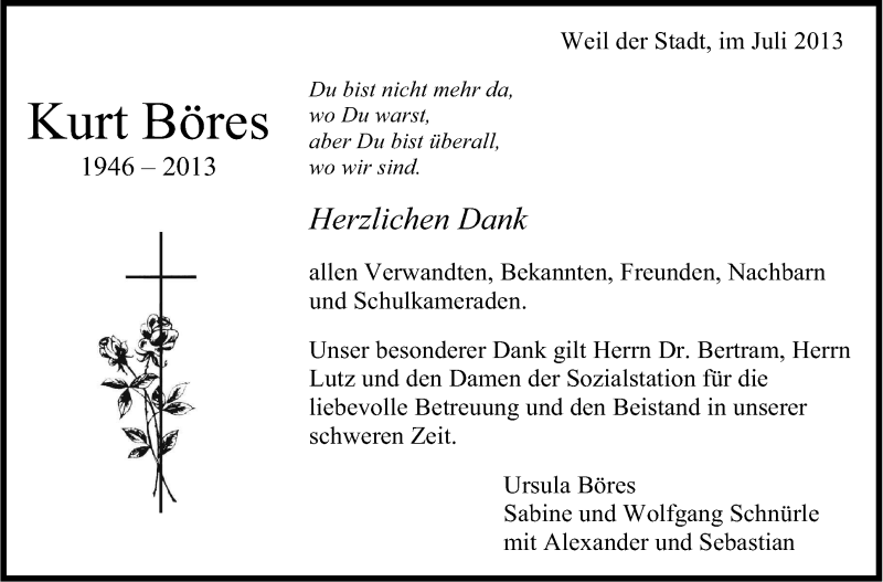 Hier finden Sie alle Traueranzeigen aus der Zeitung, die bisher für Kurt Böres erschienen sind. Weitere Traueranzeigen, die in der Zeitung erscheinen, werden hier ebenfalls aufgelistet