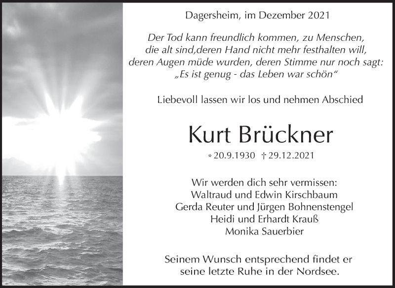 Hier finden Sie alle Traueranzeigen aus der Zeitung, die bisher für Kurt Brückner erschienen sind. Weitere Traueranzeigen, die in der Zeitung erscheinen, werden hier ebenfalls aufgelistet