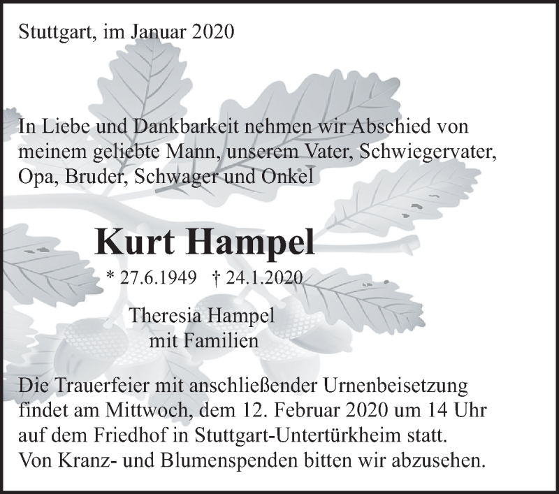 Hier finden Sie alle Traueranzeigen aus der Zeitung, die bisher für Kurt Hampel erschienen sind. Weitere Traueranzeigen, die in der Zeitung erscheinen, werden hier ebenfalls aufgelistet