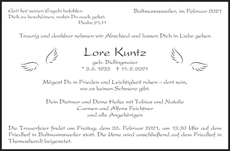 Hier finden Sie alle Traueranzeigen aus der Zeitung, die bisher für Lore Kuntz erschienen sind. Weitere Traueranzeigen, die in der Zeitung erscheinen, werden hier ebenfalls aufgelistet