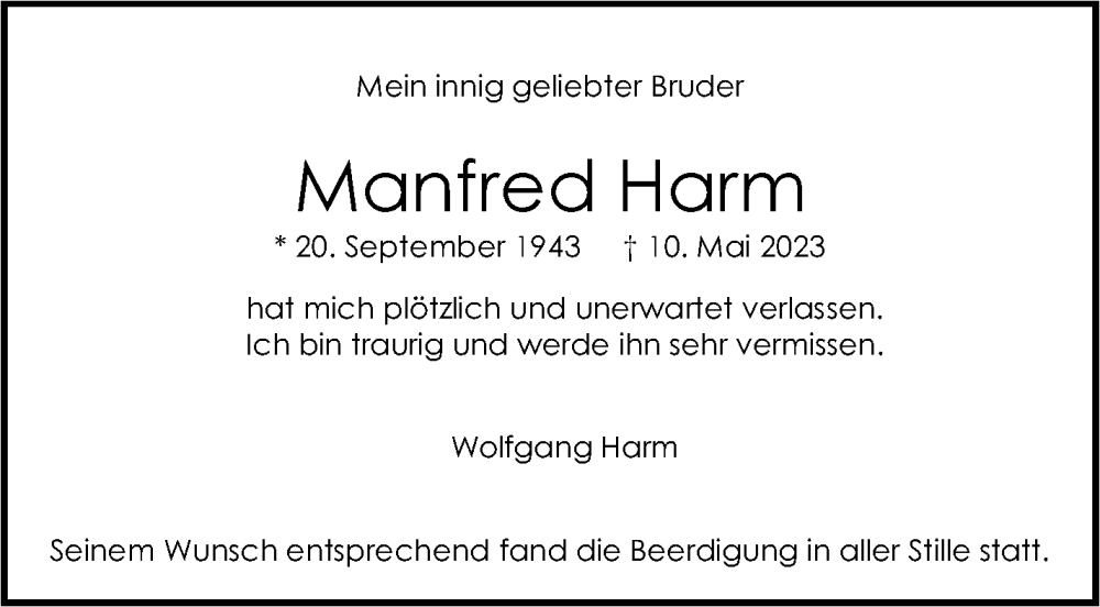 Hier finden Sie alle Traueranzeigen aus der Zeitung, die bisher für Manfred Harm erschienen sind. Weitere Traueranzeigen, die in der Zeitung erscheinen, werden hier ebenfalls aufgelistet