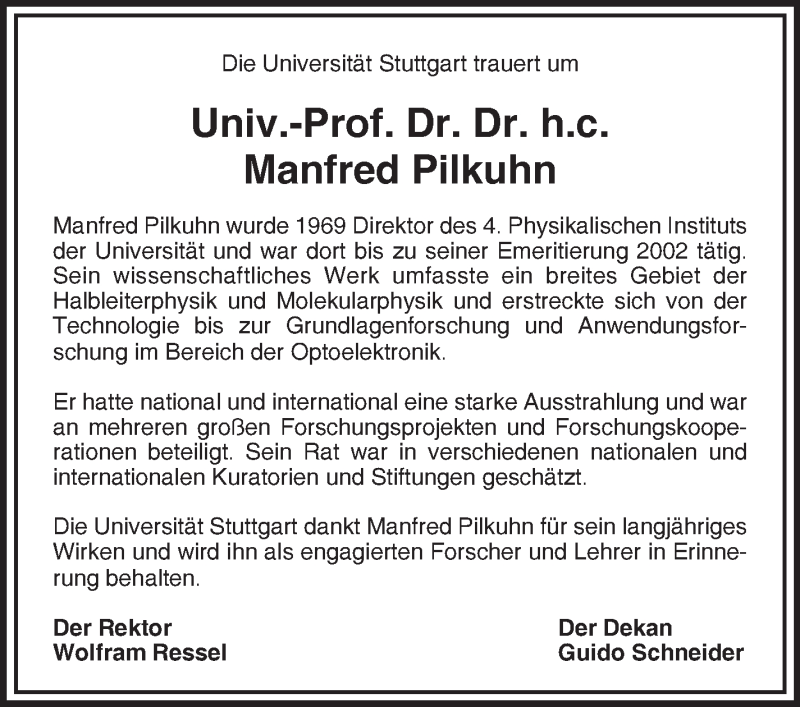 Hier finden Sie alle Traueranzeigen aus der Zeitung, die bisher für Manfred Pilkuhn erschienen sind. Weitere Traueranzeigen, die in der Zeitung erscheinen, werden hier ebenfalls aufgelistet