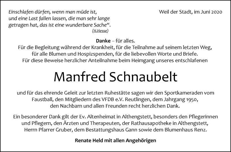 Hier finden Sie alle Traueranzeigen aus der Zeitung, die bisher für Manfred Schnaubelt erschienen sind. Weitere Traueranzeigen, die in der Zeitung erscheinen, werden hier ebenfalls aufgelistet