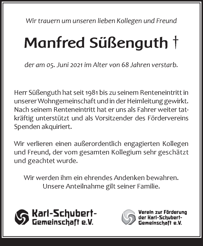 Hier finden Sie alle Traueranzeigen aus der Zeitung, die bisher für Manfred Süßenguth erschienen sind. Weitere Traueranzeigen, die in der Zeitung erscheinen, werden hier ebenfalls aufgelistet