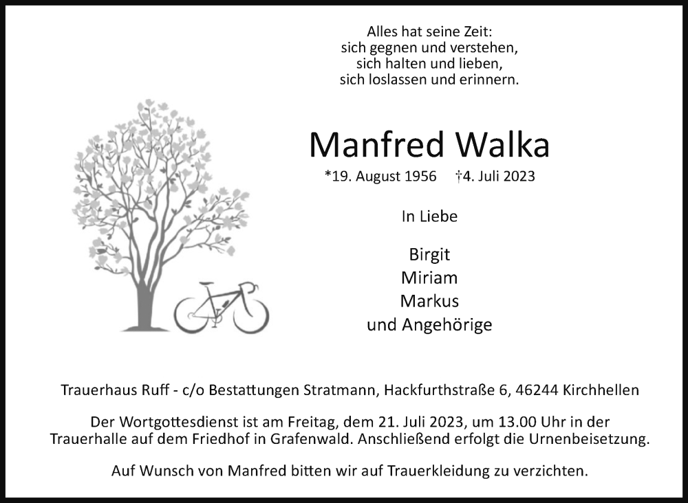Hier finden Sie alle Traueranzeigen aus der Zeitung, die bisher für Manfred Walka erschienen sind. Weitere Traueranzeigen, die in der Zeitung erscheinen, werden hier ebenfalls aufgelistet
