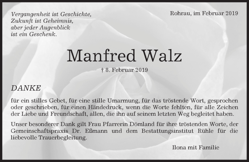 Hier finden Sie alle Traueranzeigen aus der Zeitung, die bisher für Manfred Walz erschienen sind. Weitere Traueranzeigen, die in der Zeitung erscheinen, werden hier ebenfalls aufgelistet