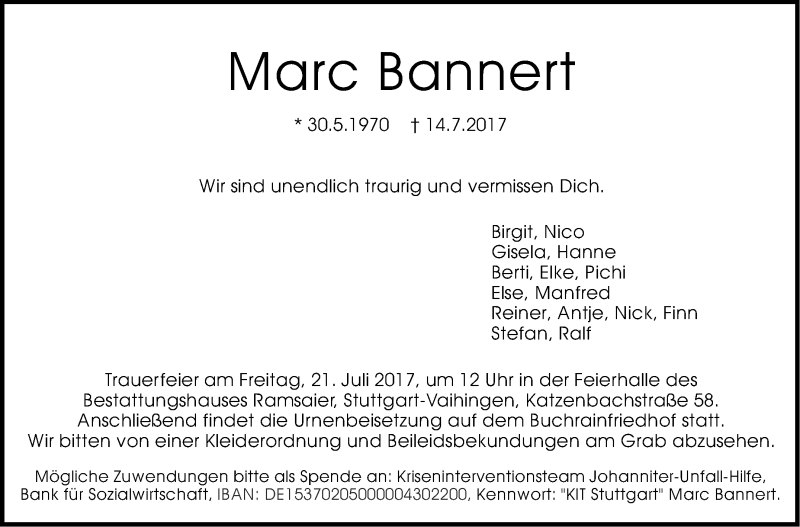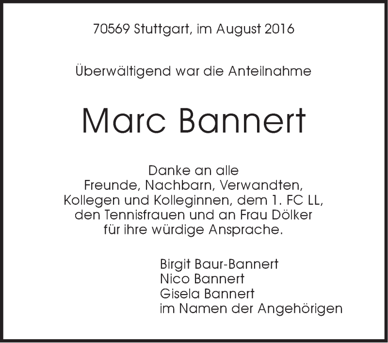Hier finden Sie alle Traueranzeigen aus der Zeitung, die bisher für Marc Bannert erschienen sind. Weitere Traueranzeigen, die in der Zeitung erscheinen, werden hier ebenfalls aufgelistet