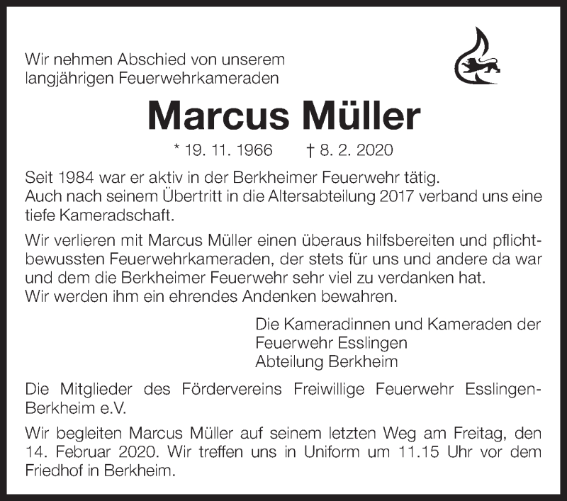 Hier finden Sie alle Traueranzeigen aus der Zeitung, die bisher für Marcus Müller erschienen sind. Weitere Traueranzeigen, die in der Zeitung erscheinen, werden hier ebenfalls aufgelistet