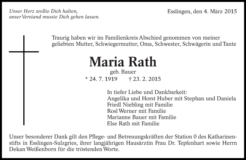 Hier finden Sie alle Traueranzeigen aus der Zeitung, die bisher für Maria Rath erschienen sind. Weitere Traueranzeigen, die in der Zeitung erscheinen, werden hier ebenfalls aufgelistet