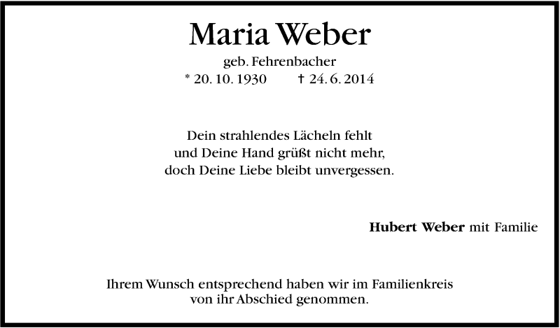 Hier finden Sie alle Traueranzeigen aus der Zeitung, die bisher für Maria Weber erschienen sind. Weitere Traueranzeigen, die in der Zeitung erscheinen, werden hier ebenfalls aufgelistet