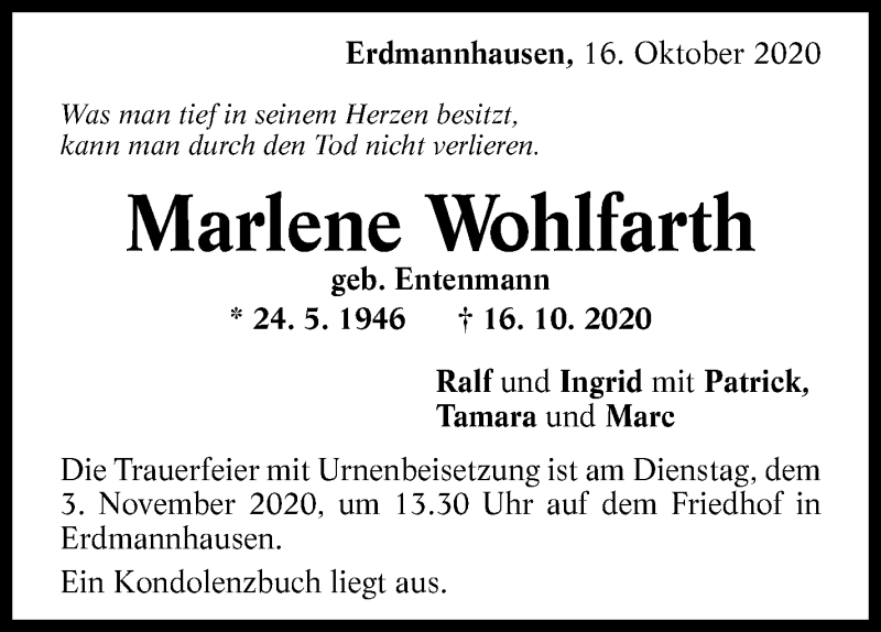 Hier finden Sie alle Traueranzeigen aus der Zeitung, die bisher für Marlene Wohlfarth erschienen sind. Weitere Traueranzeigen, die in der Zeitung erscheinen, werden hier ebenfalls aufgelistet