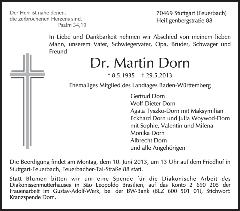 Hier finden Sie alle Traueranzeigen aus der Zeitung, die bisher für Martin Dorn erschienen sind. Weitere Traueranzeigen, die in der Zeitung erscheinen, werden hier ebenfalls aufgelistet
