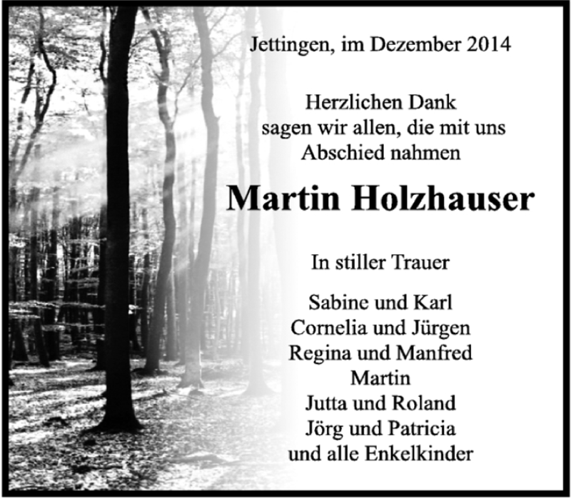 Hier finden Sie alle Traueranzeigen aus der Zeitung, die bisher für Martin Holzhauser erschienen sind. Weitere Traueranzeigen, die in der Zeitung erscheinen, werden hier ebenfalls aufgelistet