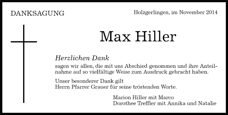 Hier finden Sie alle Traueranzeigen aus der Zeitung, die bisher für Max Hiller erschienen sind. Weitere Traueranzeigen, die in der Zeitung erscheinen, werden hier ebenfalls aufgelistet