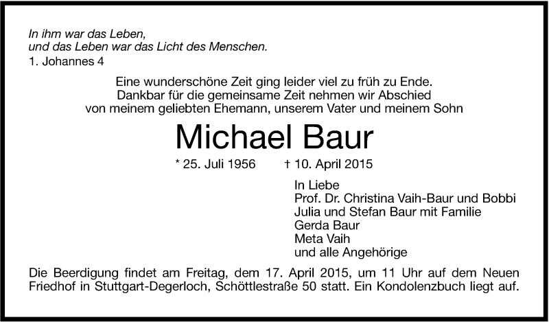Hier finden Sie alle Traueranzeigen aus der Zeitung, die bisher für Michael Baur erschienen sind. Weitere Traueranzeigen, die in der Zeitung erscheinen, werden hier ebenfalls aufgelistet