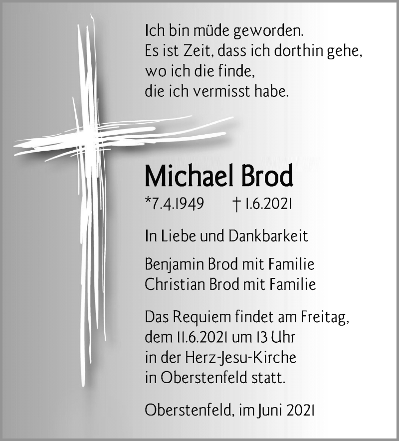 Hier finden Sie alle Traueranzeigen aus der Zeitung, die bisher für Michael Brod erschienen sind. Weitere Traueranzeigen, die in der Zeitung erscheinen, werden hier ebenfalls aufgelistet