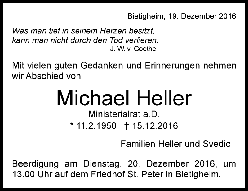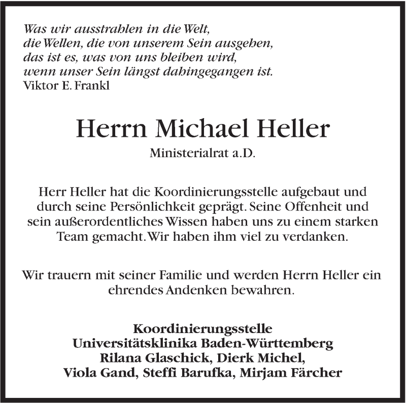 Hier finden Sie alle Traueranzeigen aus der Zeitung, die bisher für Michael Heller erschienen sind. Weitere Traueranzeigen, die in der Zeitung erscheinen, werden hier ebenfalls aufgelistet