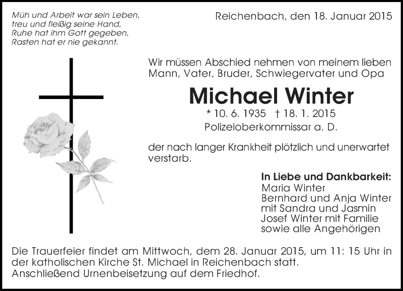 Hier finden Sie alle Traueranzeigen aus der Zeitung, die bisher für Michael Winter erschienen sind. Weitere Traueranzeigen, die in der Zeitung erscheinen, werden hier ebenfalls aufgelistet