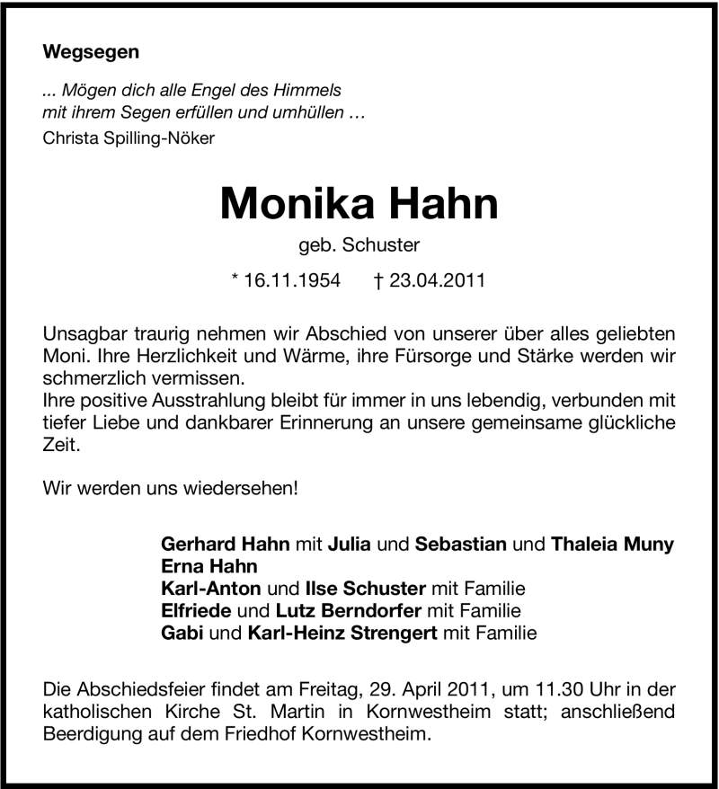 Hier finden Sie alle Traueranzeigen aus der Zeitung, die bisher für Monika Hahn erschienen sind. Weitere Traueranzeigen, die in der Zeitung erscheinen, werden hier ebenfalls aufgelistet