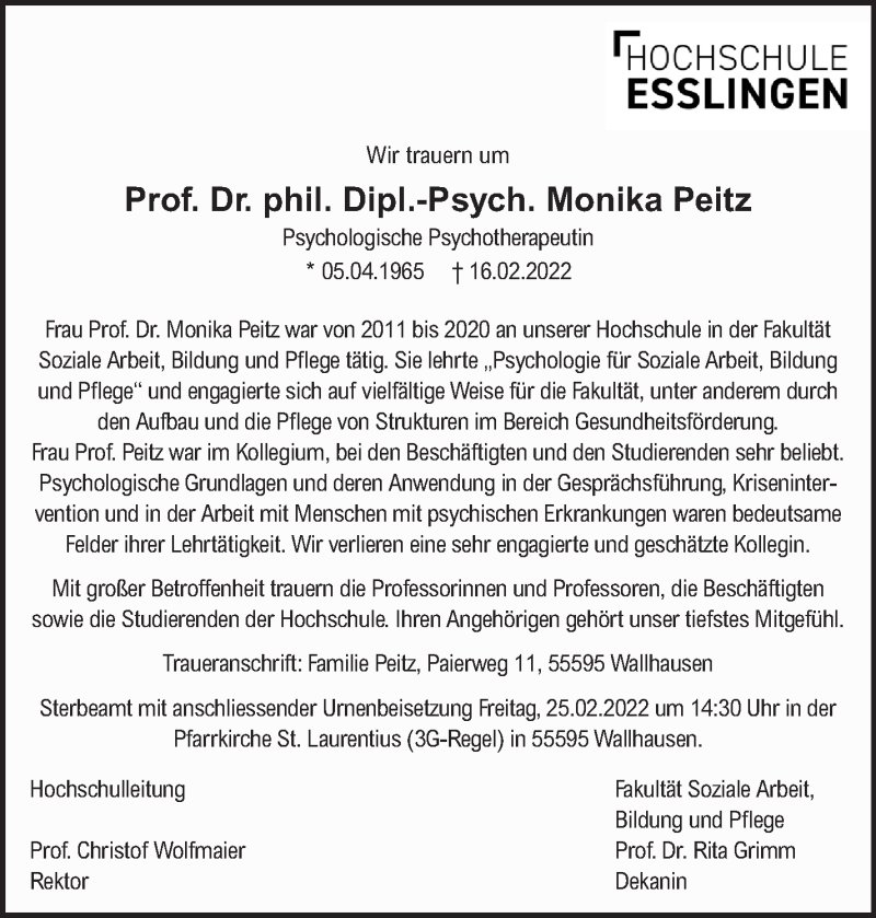 Hier finden Sie alle Traueranzeigen aus der Zeitung, die bisher für Monika Peitz erschienen sind. Weitere Traueranzeigen, die in der Zeitung erscheinen, werden hier ebenfalls aufgelistet