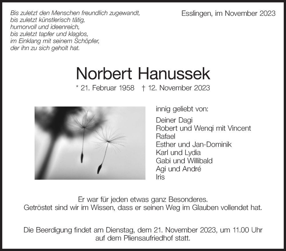 Hier finden Sie alle Traueranzeigen aus der Zeitung, die bisher für Norbert Hanussek erschienen sind. Weitere Traueranzeigen, die in der Zeitung erscheinen, werden hier ebenfalls aufgelistet