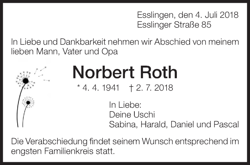 Hier finden Sie alle Traueranzeigen aus der Zeitung, die bisher für Norbert Roth erschienen sind. Weitere Traueranzeigen, die in der Zeitung erscheinen, werden hier ebenfalls aufgelistet